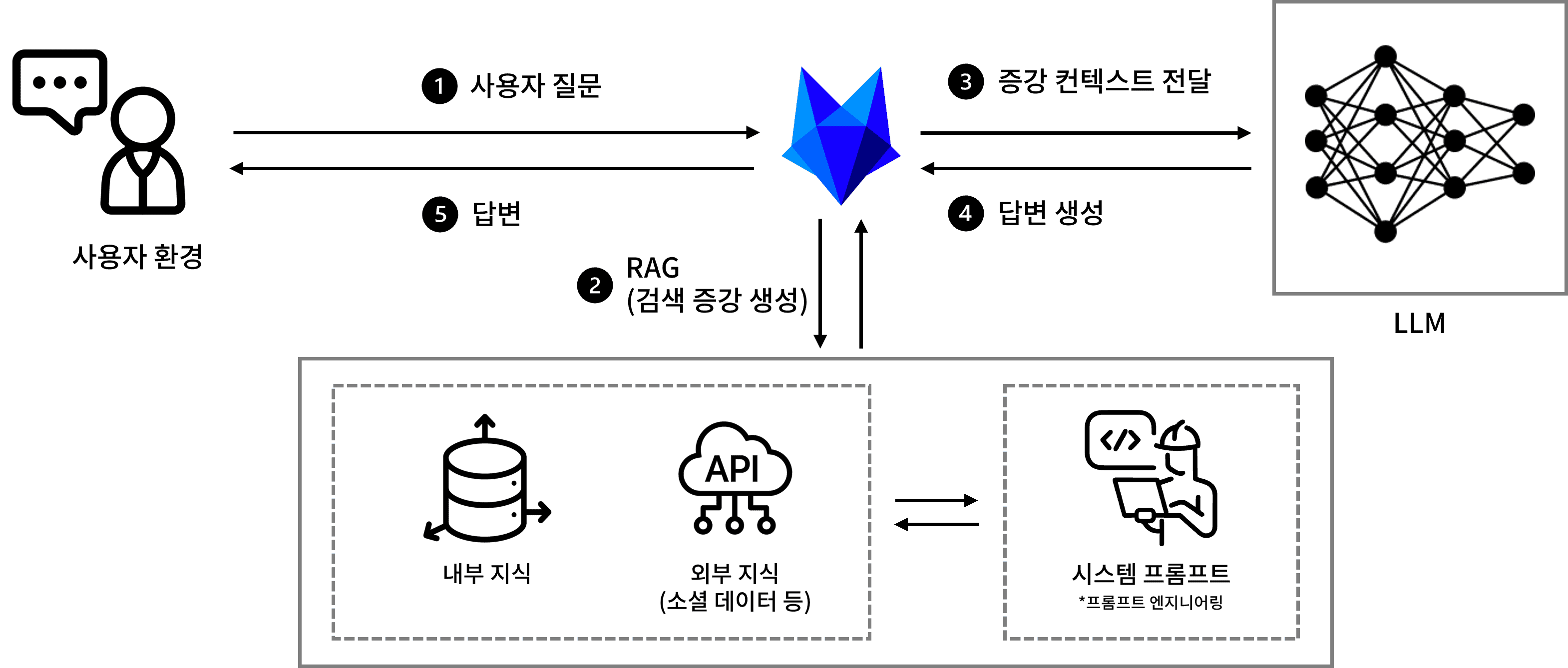 RAG 연계 방식을 통해 생성형 AI에 내부 지식을 연결하여 ‘그럴듯한 가짜 답변’을 내놓는 환각 현상을 줄이고 내부 데이터에 기반한 정확한 답변을 제공합니다.
