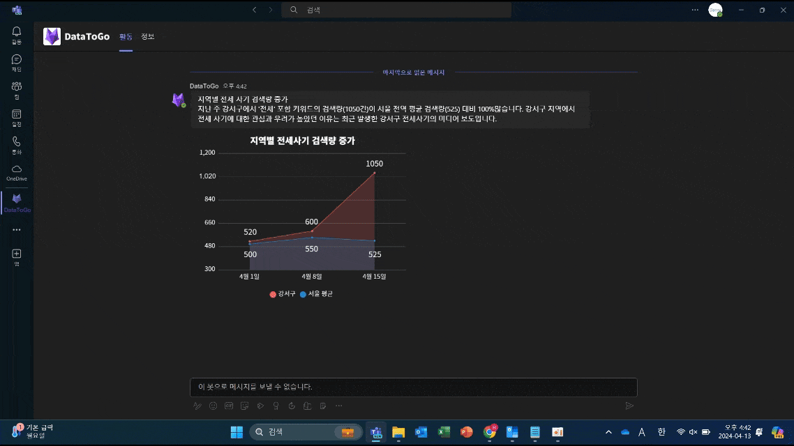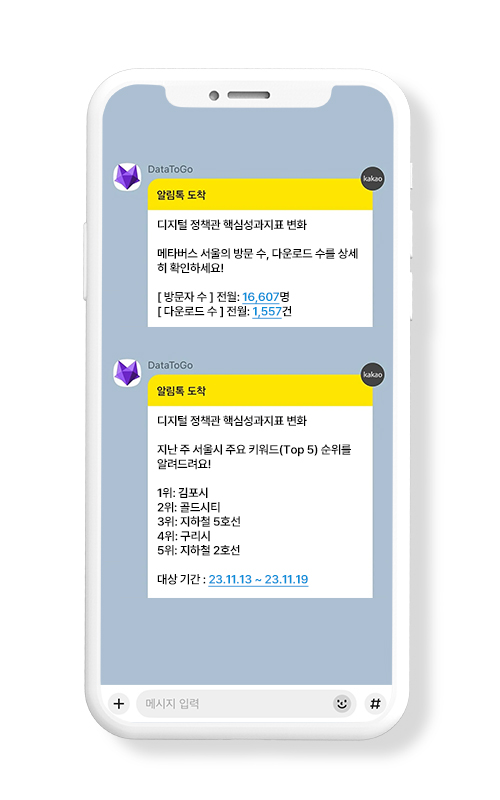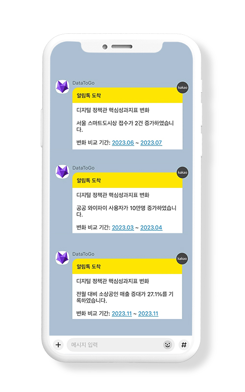매일 아침 주요 민원 동향 및 특이 데이터 분석 결과를 카카오톡으로 전송받고 있어요.